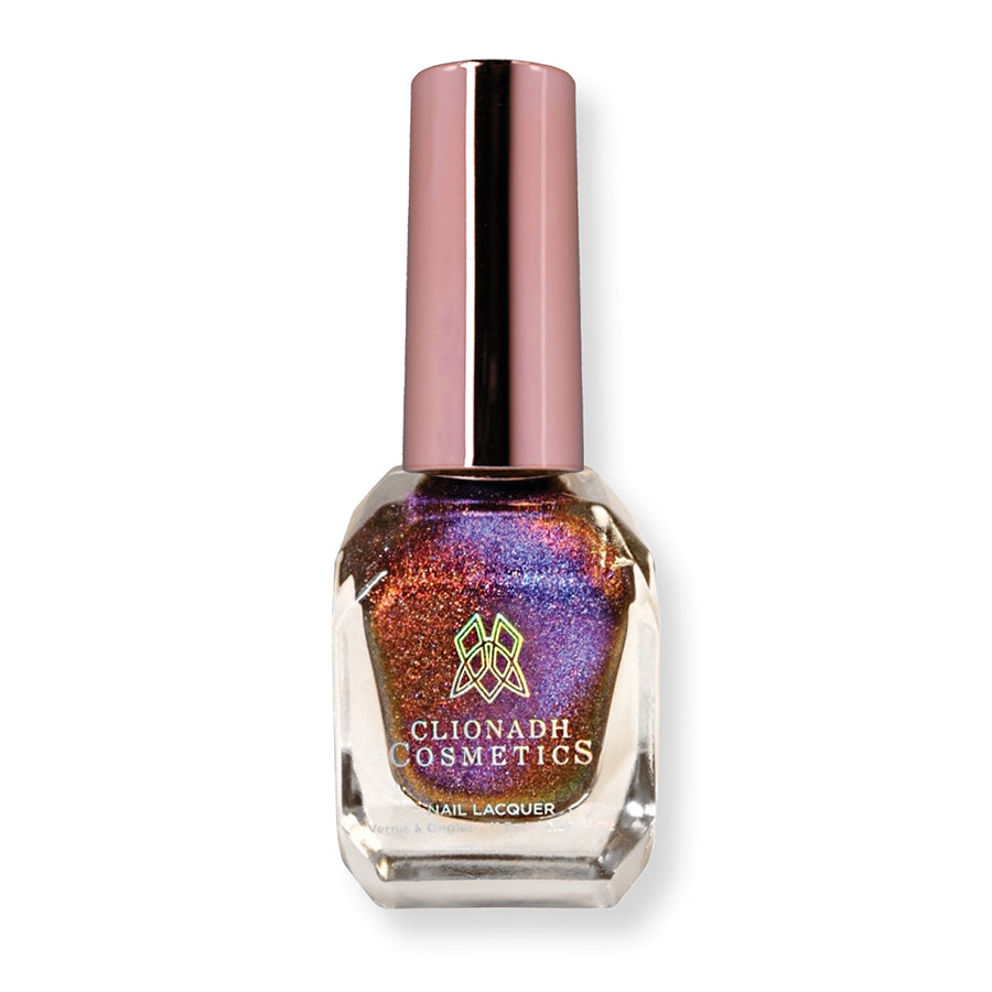 Acid Rain: A cobalt-violet-pink-orange shifting magnetic multichrome polish, with red-orange-lime shifting shimmer and fine, scattered holographic sparkle. Features a "Psychedelic" sparkly finish.