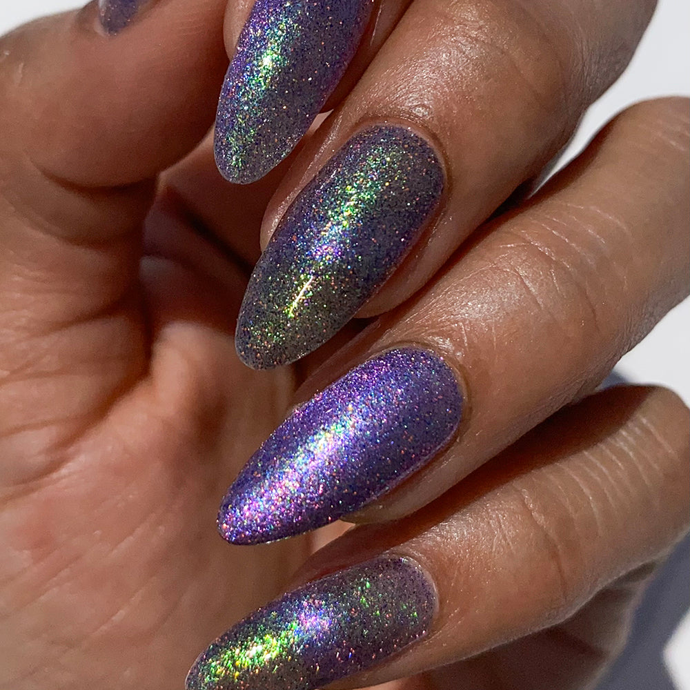 Our new Electro formula from the Slick-adelic Collection features a shockingly vibrant magnetic pull that reveals dazzling shimmers and reflective micro-glitter.