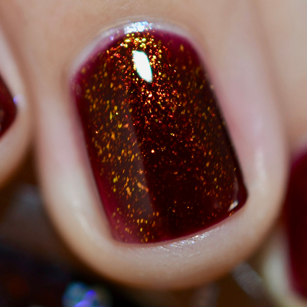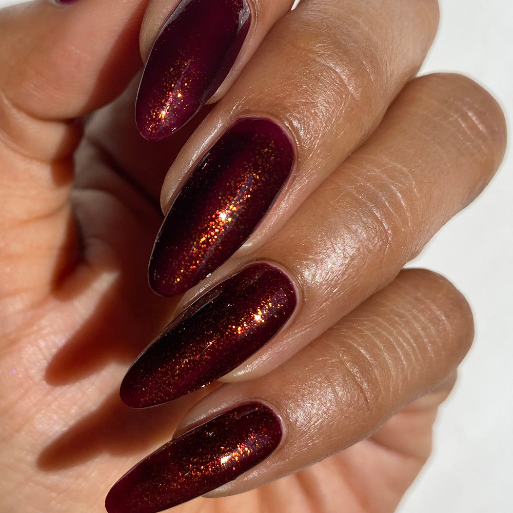 Necropolis: A fiery golden, medium-particle shimmer in a bed of crimson.