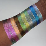 The Dimensional Multichromes: A bright, sparkling version of our beloved Jewelled Multichromes. These shadows feature a grey base and multi-coloured glitter particles, and - as the name suggests - gives extra dimension to the eye for a nearly holographic effect, especially in direct sunlight.