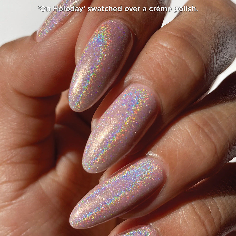 Application Tips: Best used in 1 coat over a crème nail lacquer of your choice to transform it into a linear holographic finish. We recommend using a base and top coat to increase manicure longevity. Shake well before use.