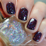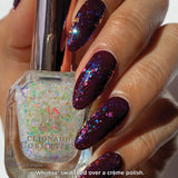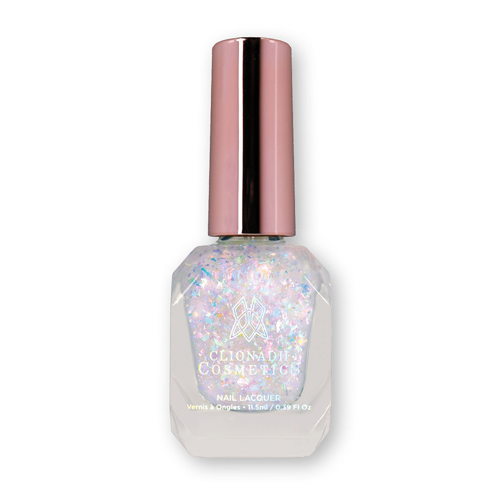 Application Tips: Best used in 1-2 coats over a crème nail lacquer of your choice. The darker the colour, the more the iridescent flakes will pop. We recommend using a base and top coat to increase manicure longevity. Shake well before use.